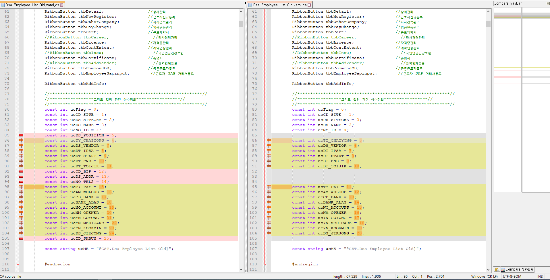 초록색은 주석 처리 한 것들 혹은 값만 바뀐것들 같고,